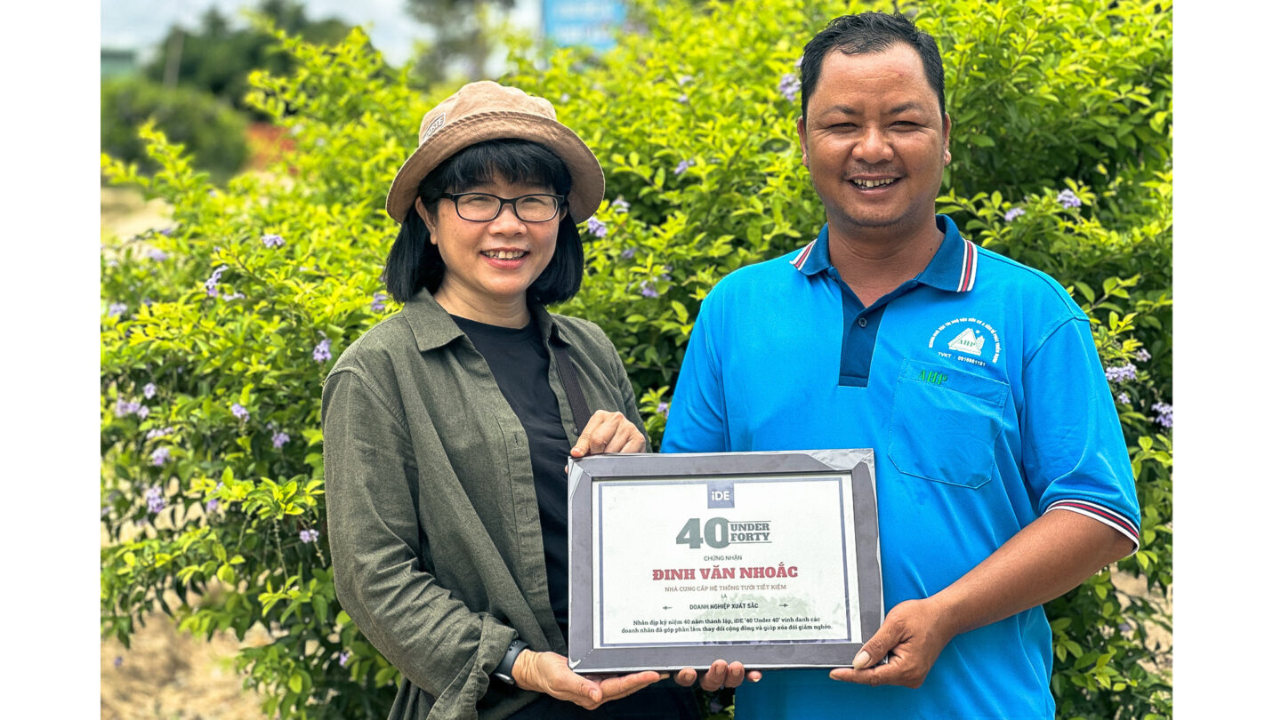 Dinh holds a 40 Under 40 certificate presented to him by the iDE Vietnam management team for exemplifying the highest qualities of entrepreneurship: business savvy, courage, community-mindedness, innovation, leadership, and grit.
