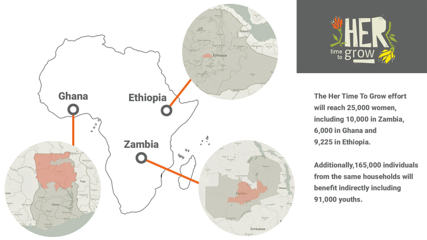 That’s why iDE is building on its many years of expertise when it comes to training FBAs, rolling out a new project that specifically targets women like Salima and her rural clients. Under the landmark Her Time To Grow project, 25,000 women are being targeted across Sub Saharan Africa – in Zambia, Ethiopia and Ghana – during the next three years.