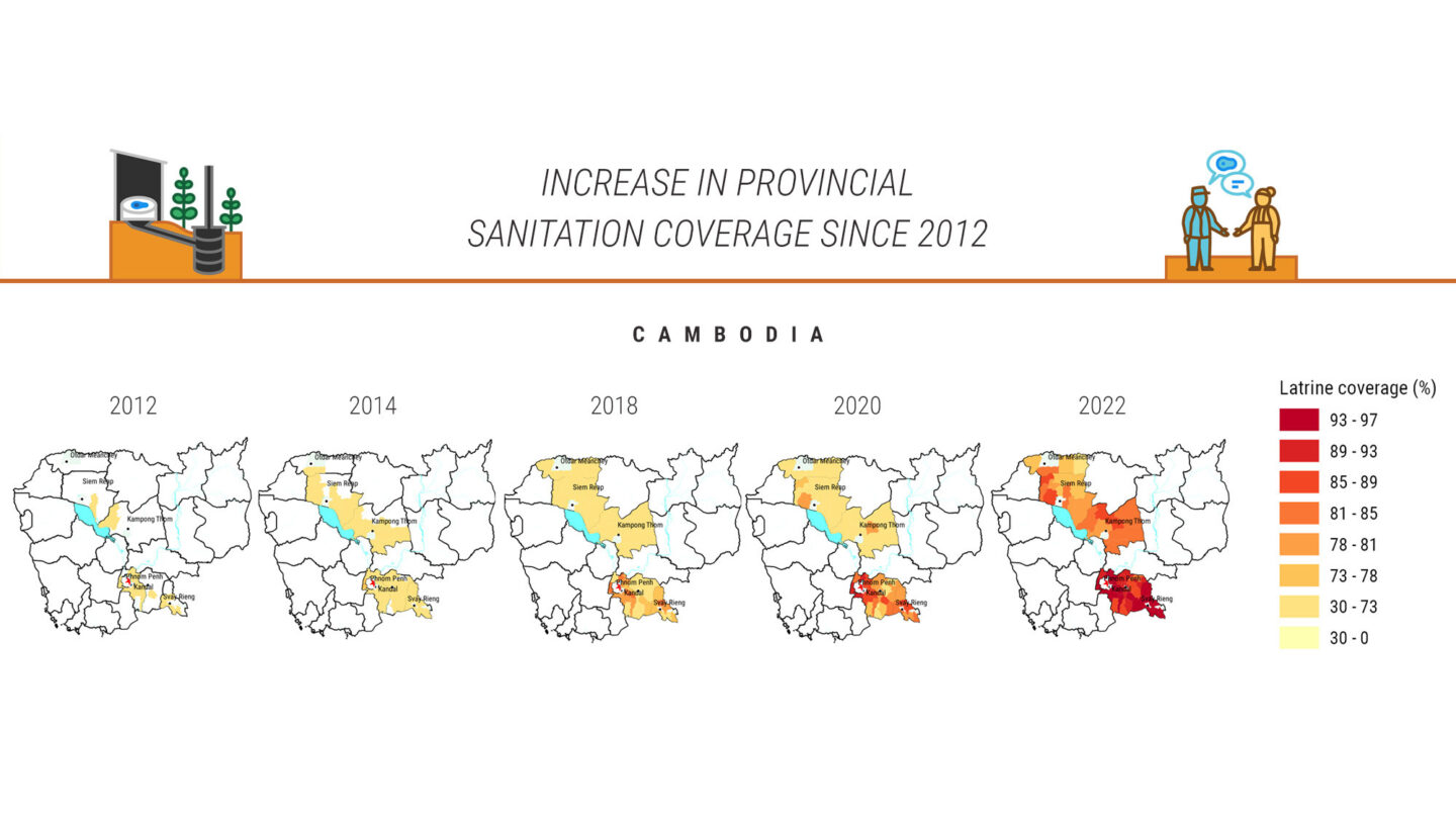 In Svay Rieng province, in Cambodia’s south-east, just 19 percent of households were equipped with a latrine when iDE launched SMSU in 2009. With low coverage came a high demand for toilets, peaking in 2014 when 9,232 were installed in the province. In the same year 70,355 iDE latrines were installed by the program across seven target provinces. In Svay Rieng, efforts to increase sanitation coverage have been so successful, in April 2022 the province was the first to be declared ODF. Svay Rieng’s Department of Rural Development, which worked closely with iDE, was instrumental in achieving ODF status for its jurisdiction because of its deep understanding of sanitation sustainability, especially when it came to targeted subsidies and risks of market distortion.