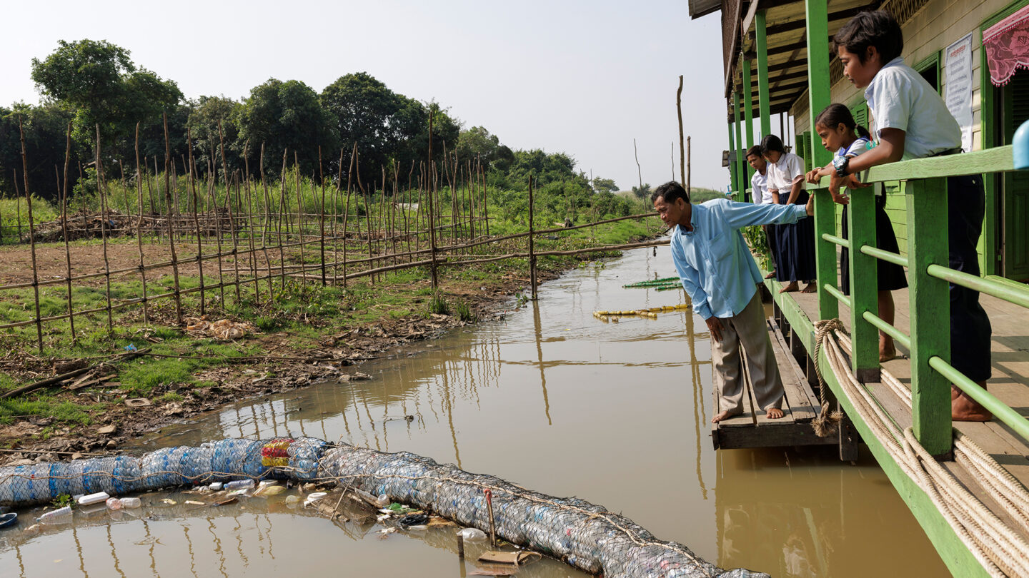 While waste presents a challenge across Cambodia, here among the floating villages and dense lakeside communities, sanitation and solid waste management are limited. In the dry season, when most of the waterway’s contents drain into the Mekong River, trash piles on the shoreline, tributaries and floodplains. The lake is also heavily contaminated with fecal matter and agricultural chemical pollutants. According to a 2019 study published in Science of the Total Environment, bacterial concentrations are particularly acute around floating villages — designed to rise above annual flood waters — causing residents to commonly suffer from waterborne diseases.