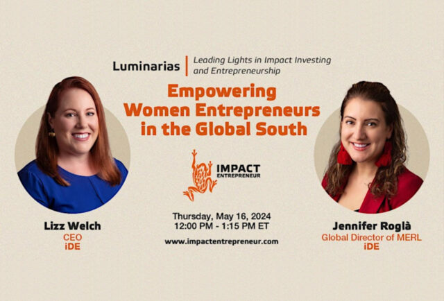 As the Senior Global Director of iDE’s Monitoring, Evaluation, Research, and Learning (MERL) Team, Jennifer leads our global measurement strategy and support for MERL staff across iDE countries. She oversees strategic initiatives to ensure iDE's rigorous measurement meets organizational and project objectives, while minimizing burdens on respondents and involving relevant stakeholders. She additionally designs and implements research and evaluations, oversees complex data analyses, promotes iDE thought leadership efforts, develops training opportunities for MERL staff globally, and supports new business efforts.