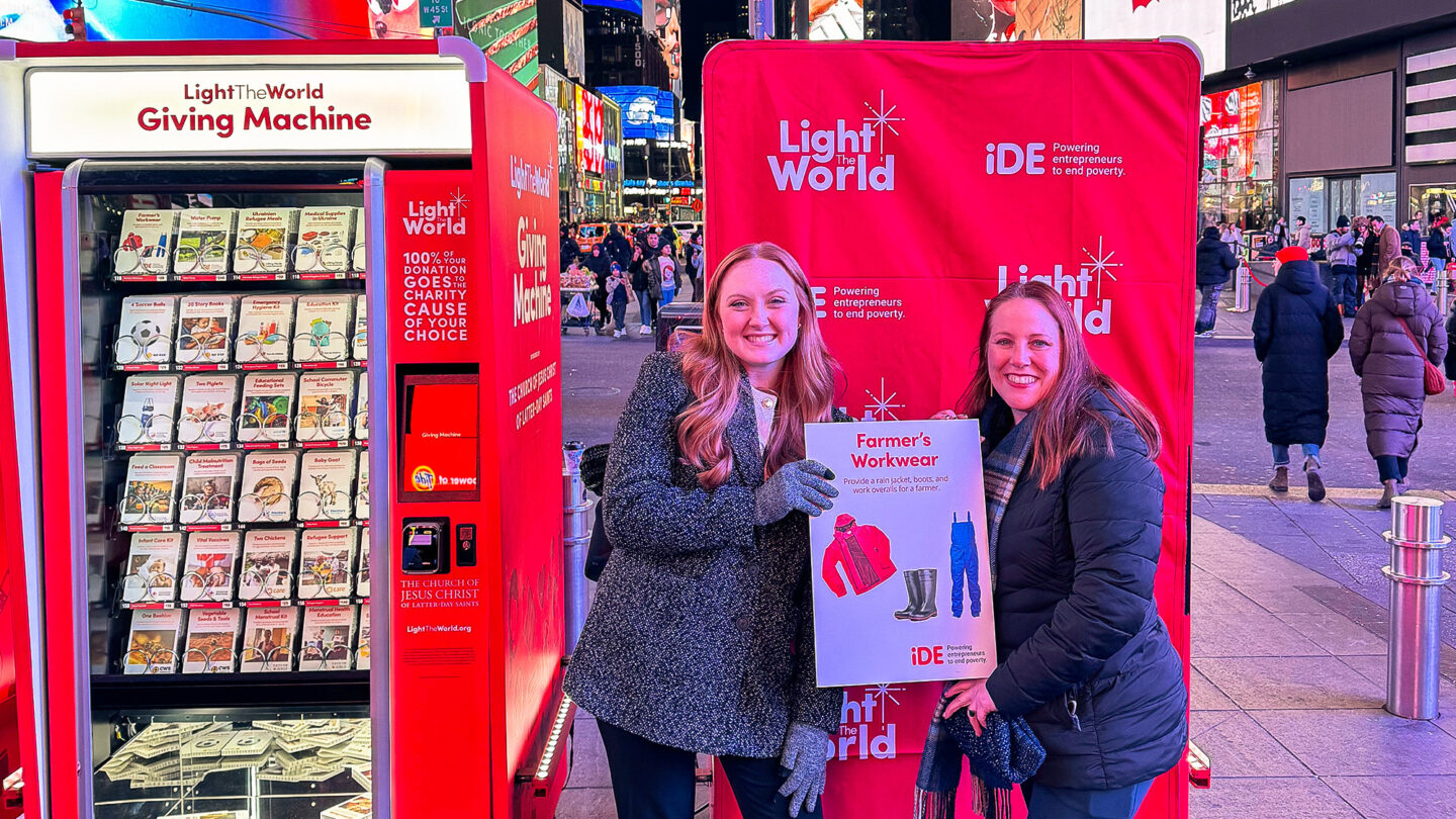 The Giving Machines are part of an annual Light the World seasonal campaign, spearheaded by The Church of Jesus Christ of Latter-day Saints. On December 2, the Church hosted a special reception and festive launch event in New York City’s Times Square where iDE Chief Executive Officer, Elizabeth Welch, participated in the ribbon cutting ceremony.