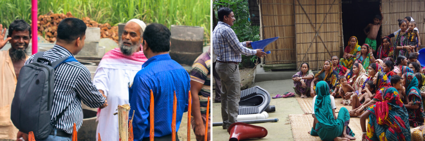 Azad Rejaul Karim is the chairman of the Nawpara Union Parishad, an administrative district of Bangladesh that is one of the most remote in the country and where the population is exceedingly poor. Many of the men are forced to migrate to different locations in search of work, leaving the women and children at home where they face very challenging livelihood conditions. Most of the local economic activity is subsistence farming, with very little disposable income. Thus, the sanitation condition of Nawpara Union is quite dire. Although the Union had reported in the past that they had 100% sanitation coverage, they recently admitted that only 60% of the local households had a hygienic toilet.