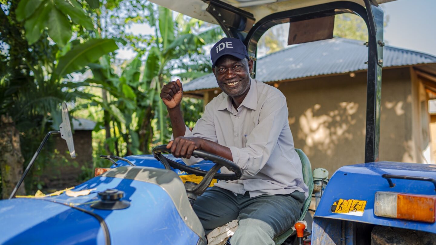 With support from iDE and partners, Fred runs the Fredica Service Center, a thriving business serving over 500 farmers with shelling, ploughing, and climate-smart training. Photo by George Opejo for iDE, 2024