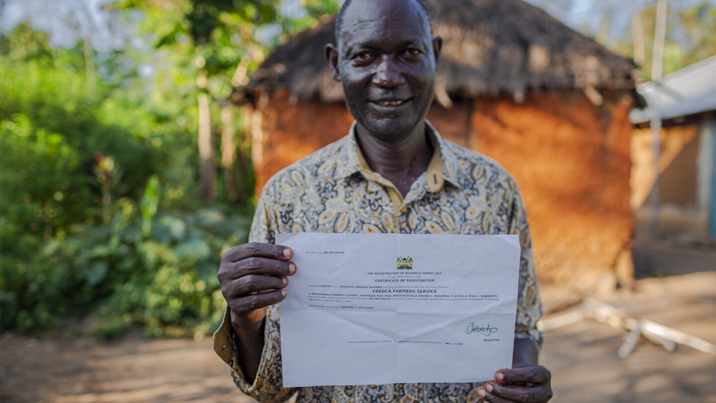 With iDE training, Fred has diversified into sorghum, soy, and groundnuts—crops more resilient to Kenya’s increasingly unpredictable climate.