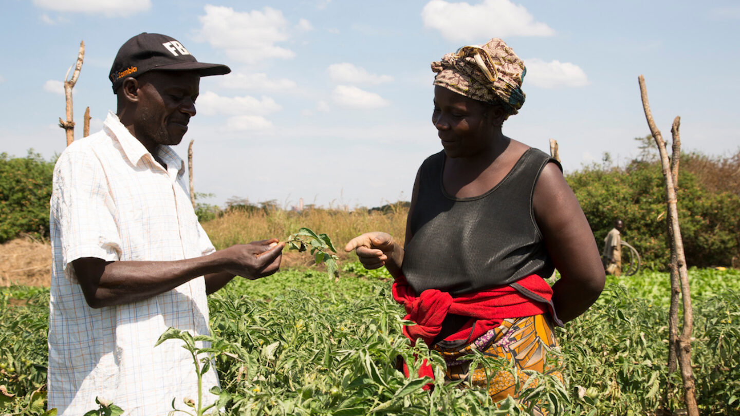 “If more farmers are doing well like me, we can grow together and solve community problems such as food insecurity, malnutrition, and even theft,” said Fabian Amilli (on the left), a Farm Business Advisor in Zambia.