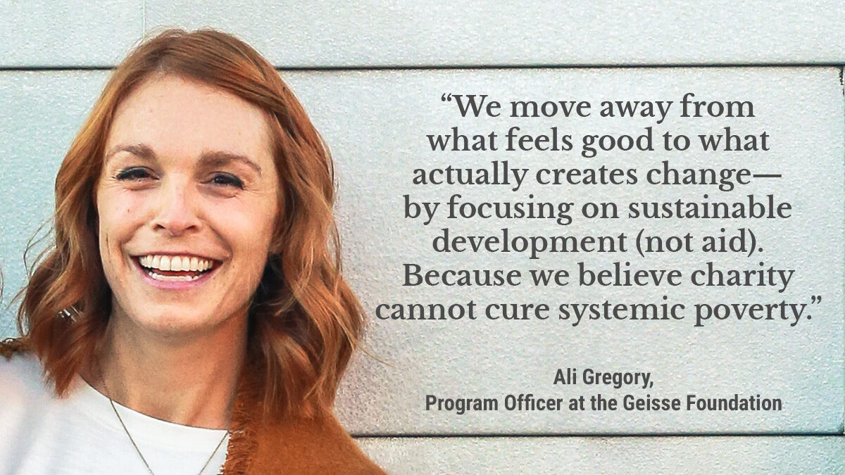 Ali is the granddaughter of John and Mary Geisse, and the Program Officer of The Geisse Foundation. She shared her beliefs on philanthropy with us, explaining why she invests in sustainable development.