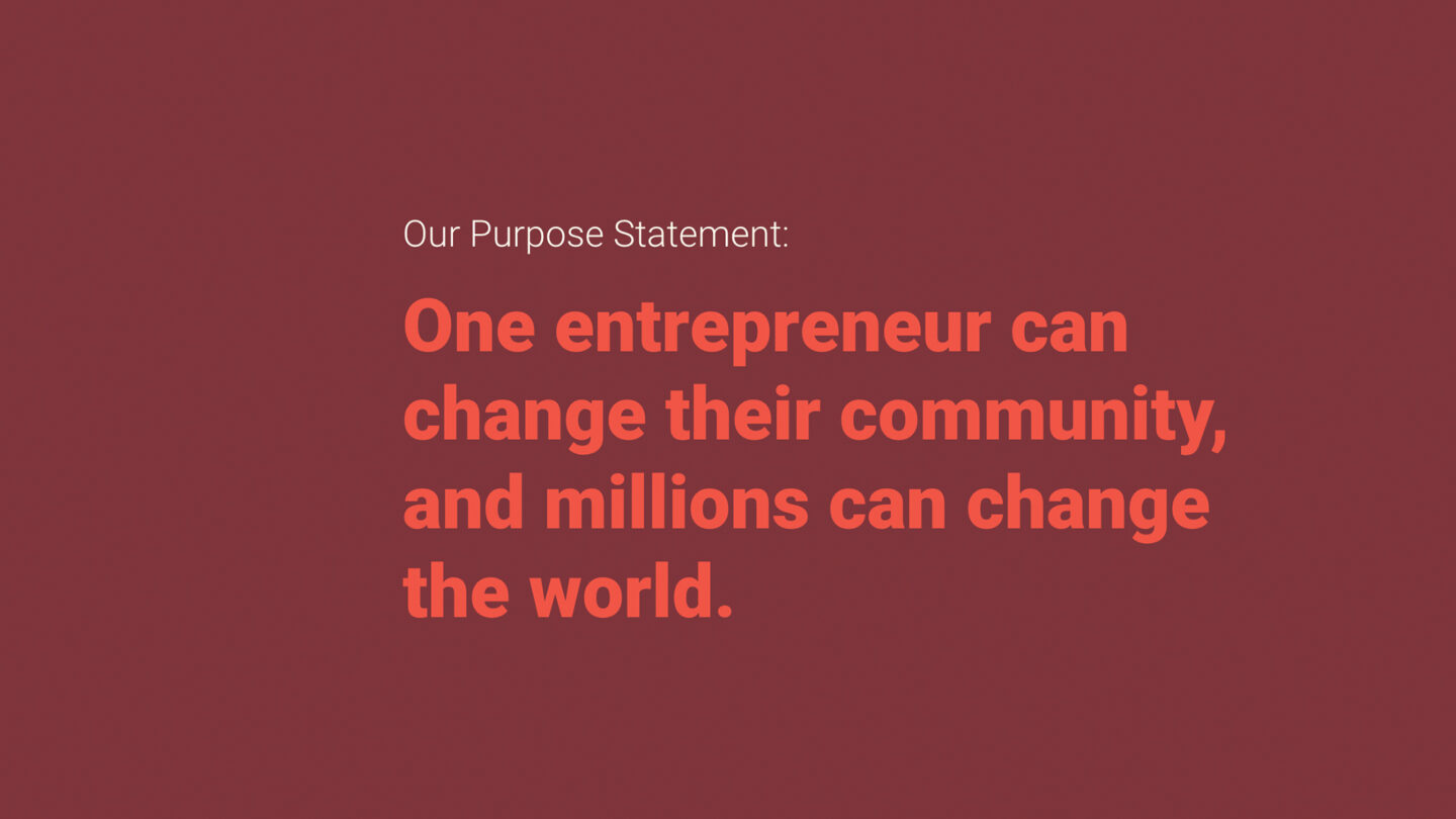 We chose to use the word “Powering” quite purposefully. “Empowering” is trendy but feels disingenuous. We’re not in a position to empower anybody. We’re not superior or perfect. Our own cultures and economies have flaws and we certainly don’t have all the answers. When we say “Powering entrepreneurs,” we are referring to all the ways we help entrepreneurs thrive within a market ecosystem: training, technology, finance, and connections within the market ecosystem itself.