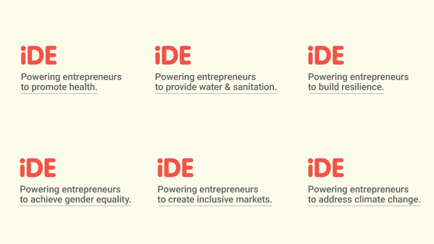 Propelled by what we know to be true, we are always looking for new friends, partners, and champions to join our boots-on-the-ground, market-development journey. When we introduce ourselves, a purpose statement addresses why we operate, what we believe. And our name—either iDE or International Development Enterprises—answers who we are and have been. But answering the question “What do you do?” with a simple and memorable answer has always been a challenge.