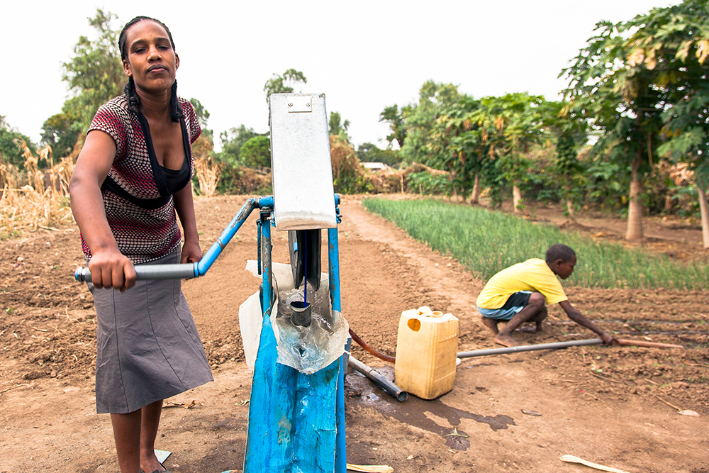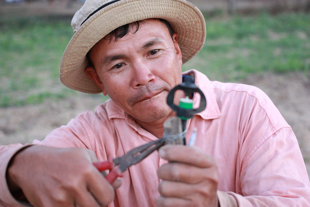 Labor-smart: The average bucket farmer lifts and hauls over four tons of water per day to irrigate a 500-square-meter field. iDE identifies and adapts existing technologies to automate and mechanize some of the more-labor intensive aspects of farming.